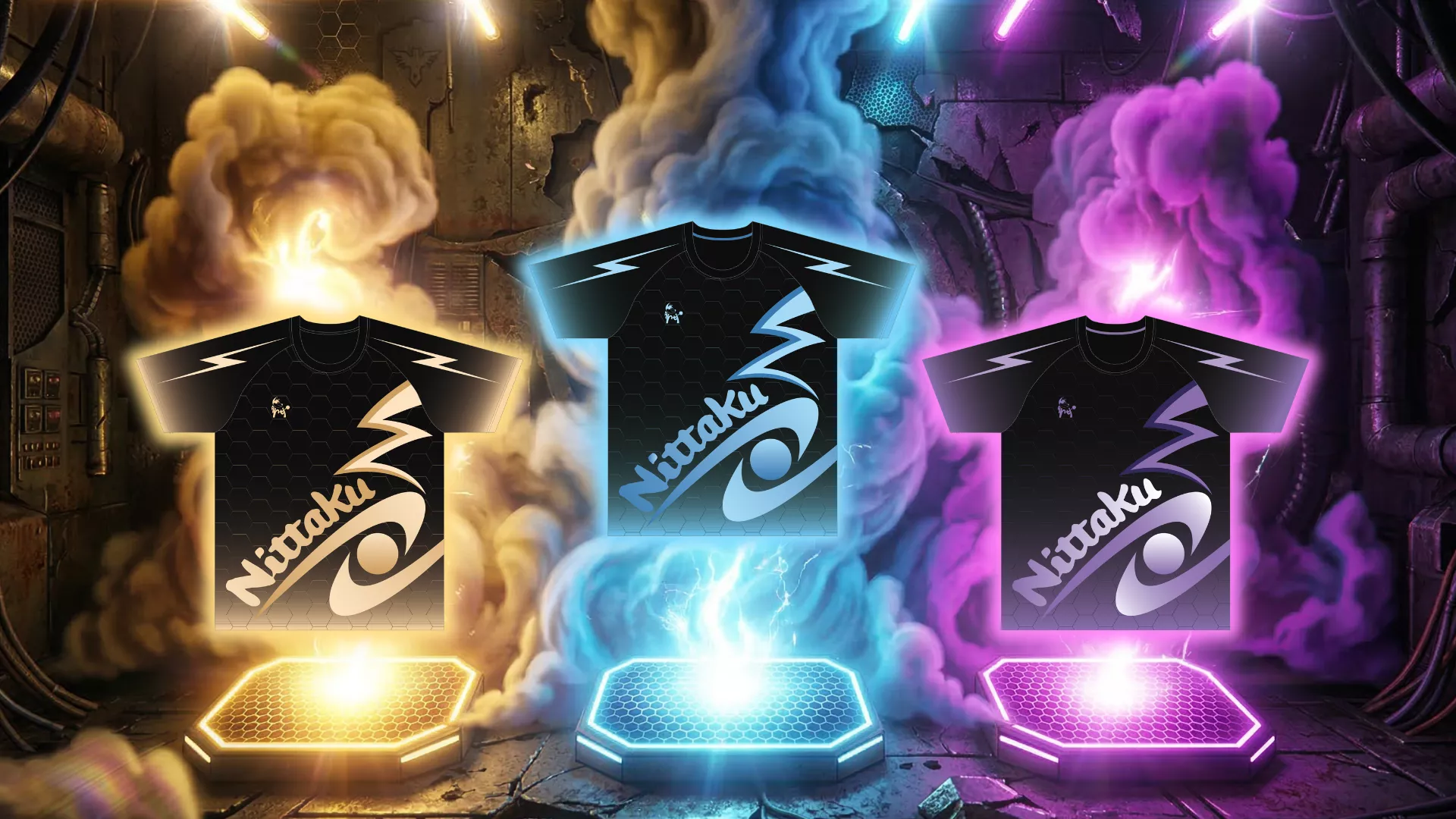 肩膀兩側延伸至胸前的銳利閃電幾何圖形,完美修飾身型,並隨著你每一次的拉球、彈擊,在視覺上劃出最具破壞力的極速軌跡。 - 🌪️ 動態 Nittaku 核心標誌
